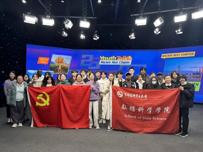 12月9日下午,我校组织学生参与由中国环球电视网(CGTN)举办的《25载,澳门再出发》青年交流节目录制活动,我校2名澳门籍学生、22名数据科学学院学生以及13名国际学院学生参加了此次活动。
