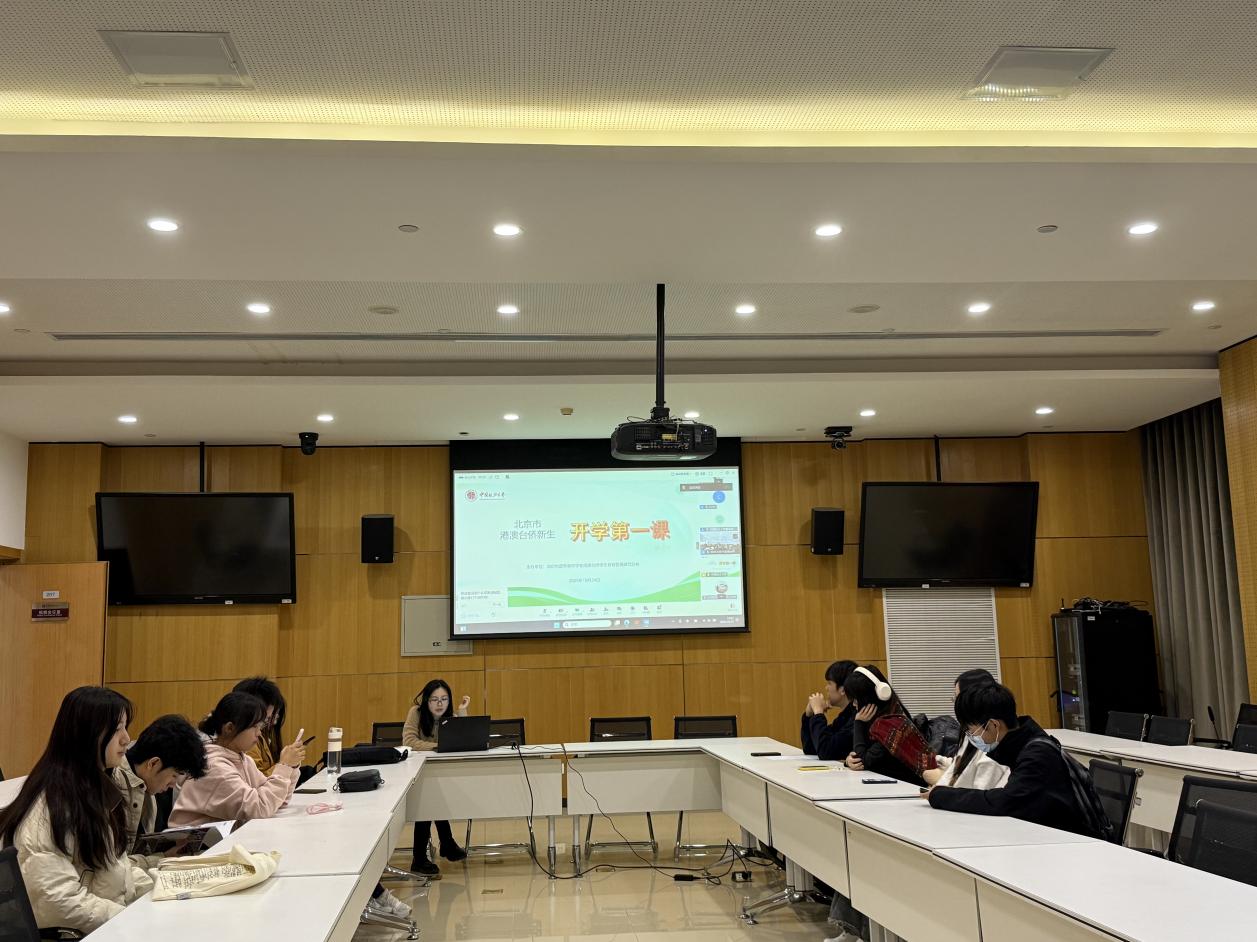 2025年10月24日,北京市高等教育学会港澳台侨学生教育管理研究分会举办的港澳台侨新生“开学第一课”活动顺利开展。首都经济贸易大学积极组织校内的港澳台侨学生,于博学楼二楼视频会议室参与此次活动。共计9名港澳台侨学生参加此次活动。