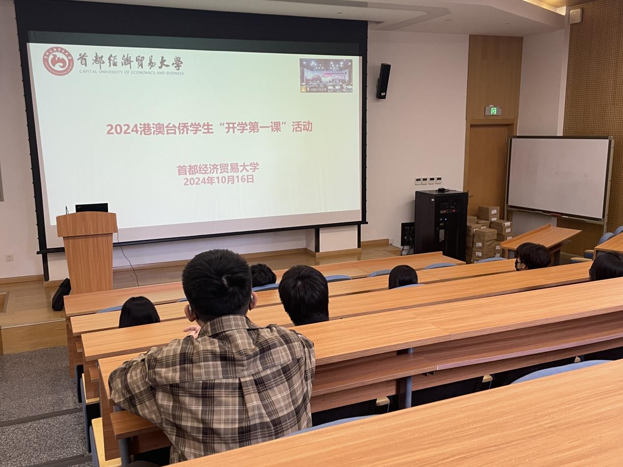 2024年10月16日下午,首都经济贸易大学港澳台办公室组织我校港澳台侨学生参加了由北京市高等教育学会港澳台侨学生教育管理研究分会举办的2024年北京市港澳台侨新生“开学第一课”活动,活动采用线上和线下相结合的方式。我校部分港澳台侨学生在博远楼二号报告厅集中观看了此次讲座。
