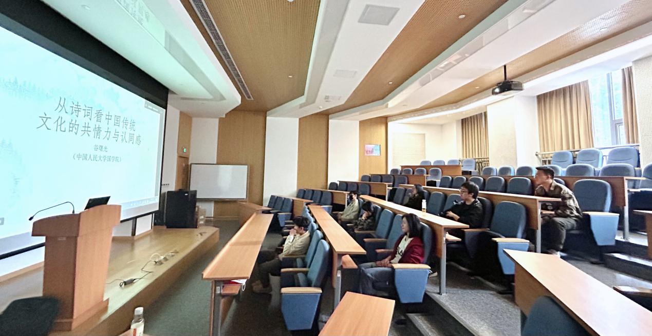 本次活动旨在深入学习贯彻党的二十大和二十届三中全会精神,进一步加强港澳台侨学生的国情教育,培养青年人才为实现祖国统一和中华民族伟大复兴贡献力量。此次讲座中,中国人民大学副校长郑新业教授在致辞中强调了理想信念的重要性,鼓励港澳台侨学生以国家发展大局为重,将个人价值融入强国建设中。随后,中国人民大学国学院谷曙光教授作了题为《从诗词看中国传统文化的共情力与认同感》的专题讲座。谷曙光教授通过丰富的诗词案例,生动展现了诗词与中华文化的紧密联系,并进一步强调,诗词不仅能拉近港澳台侨学生与中华文化的距离,还能唤醒共同的历史记忆,在共情中实现文化的认同与传承。