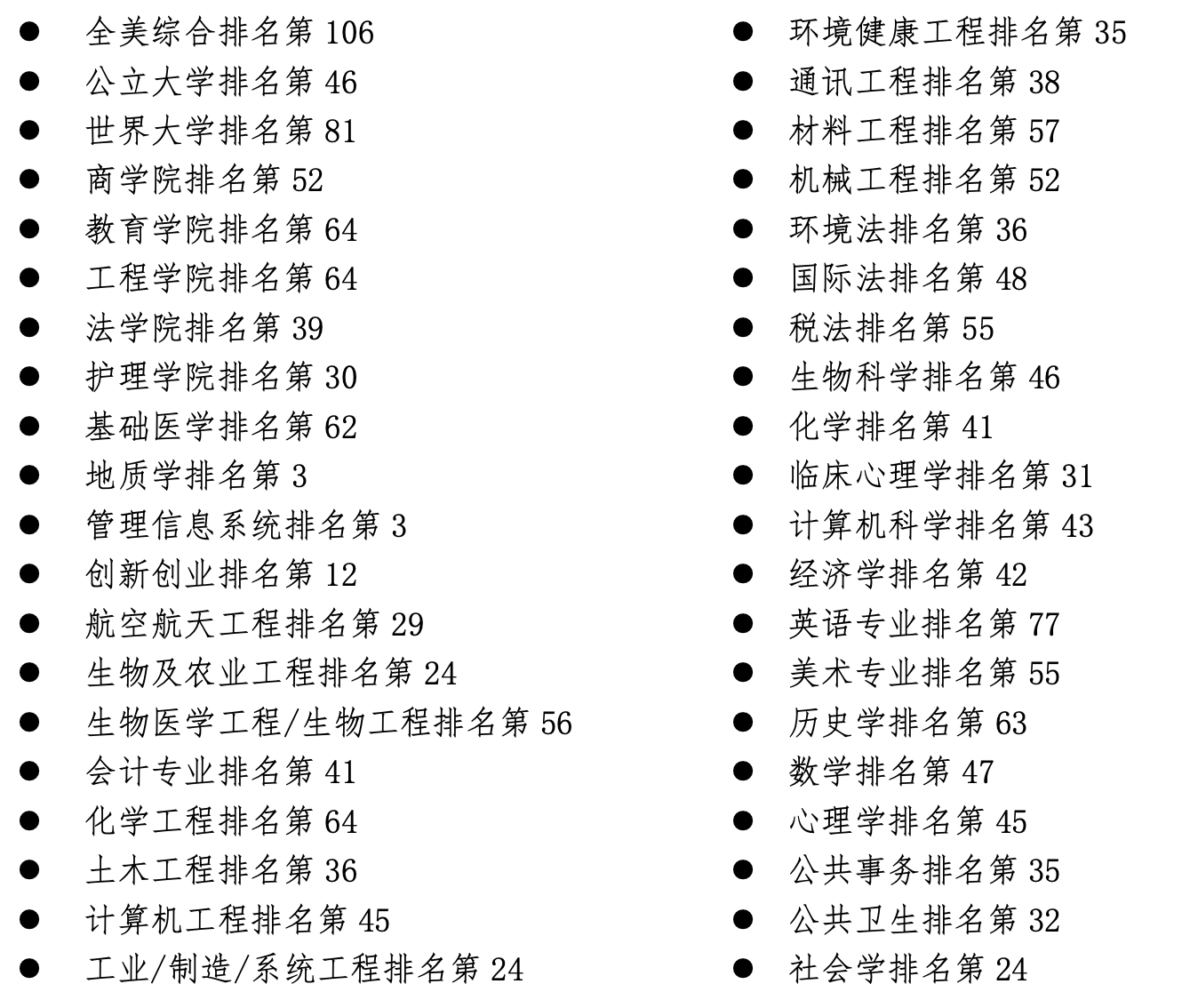 埃勒管理学院:工商管理、商业经济学、商业管理、会计、商业、经济学、个 人与家庭财务规划、市场营销、运营管理、金融、管理信息系统、创新创业等