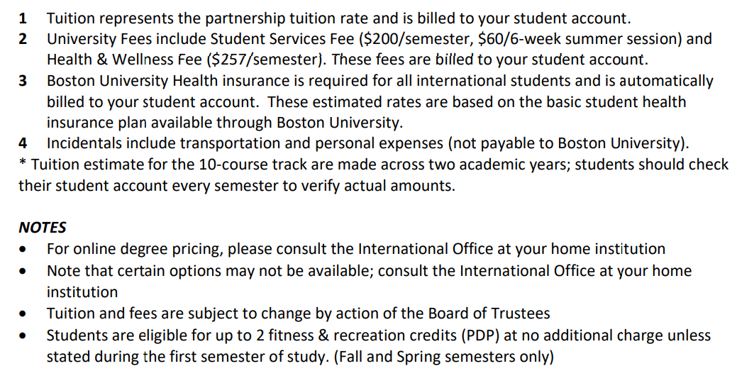 3.波士顿大学建议所有国际学生参加健康保险。这些估计费率基于波士顿大学提供的基本学生健康保险计划;